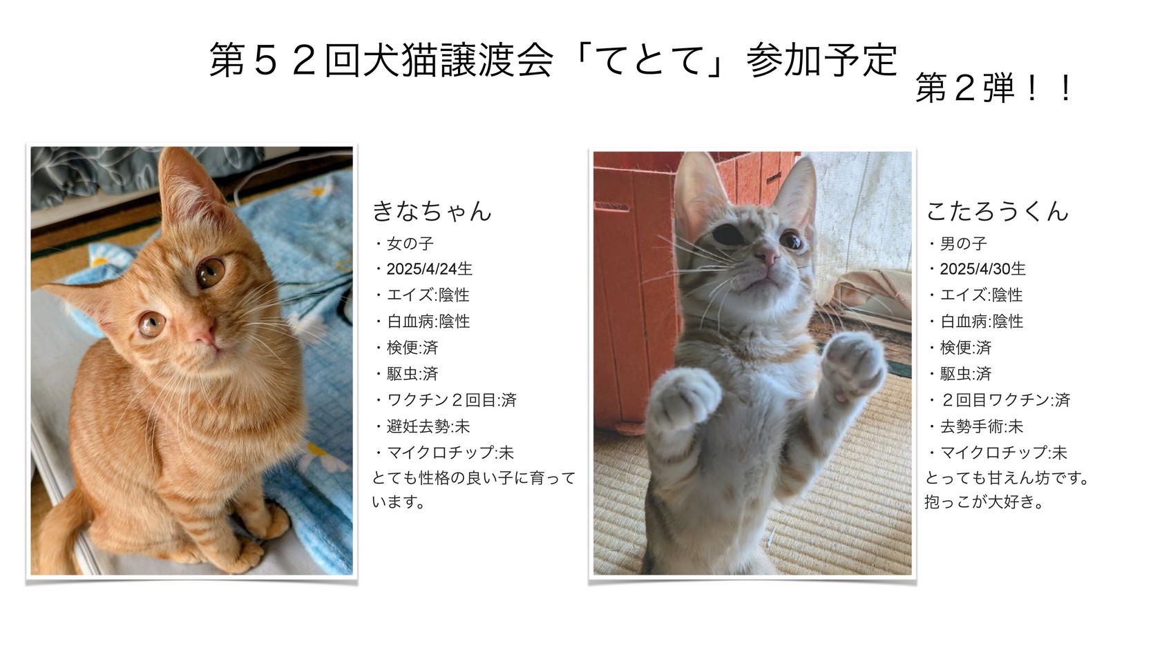 申込フォームはこちらから→第52回犬猫譲渡会参加予定 第二弾